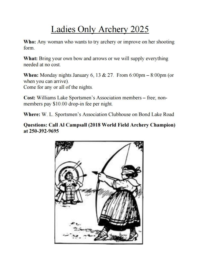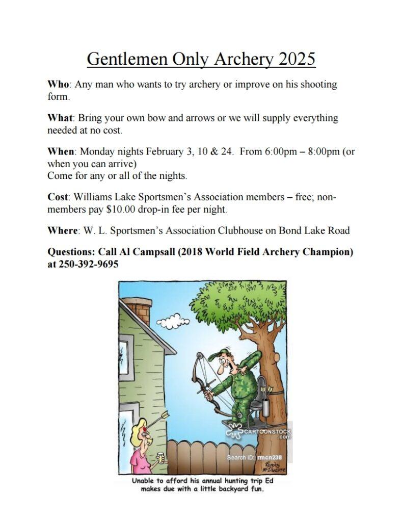 Cariboo Archers (CA) are an independent Society under the Society Act of British Columbia, yet they are an integral element of the Williams Lake Sportsmen’s Association (WLSA) They maintain their own Board of Directors with a membership fee and fund raising events while having a seat on the WLSA Board of Directors.